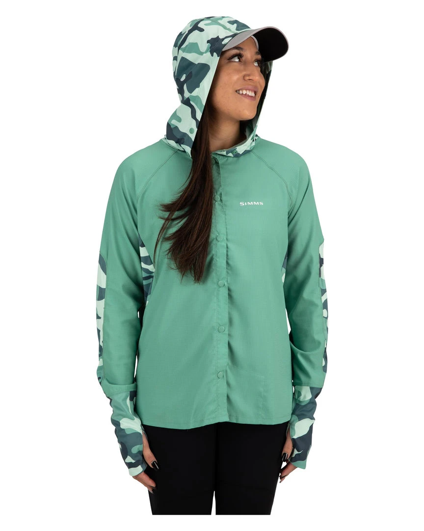 Simms’ BiComp LS Hoody protects against sun while prioritizing mobility and comfort with stretch-knit SolarFlex® fabrics and a lightweight, fast drying front.